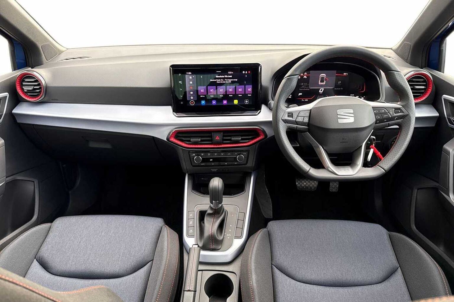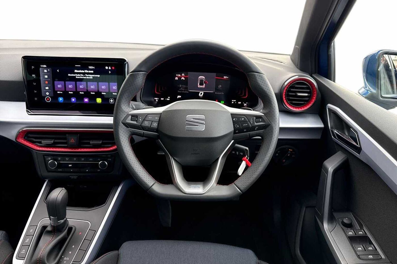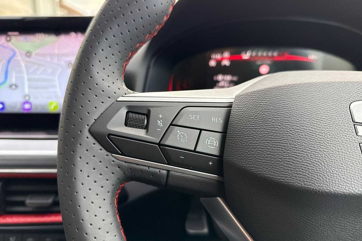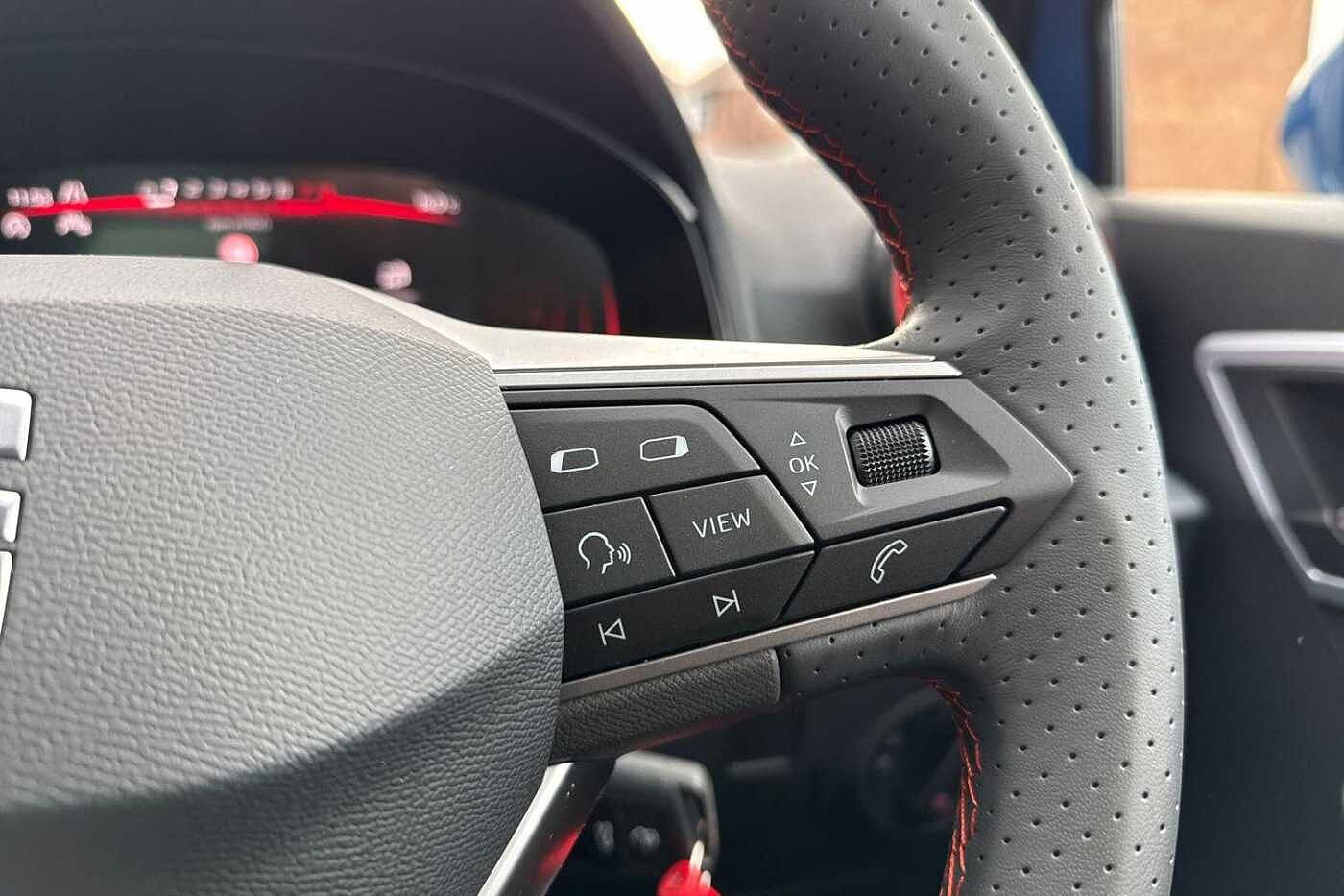 - Perforated Leather Flat-Bottomed Steering Wheel with Red Stitching and FR Logo with Leather Gear Knob and Handbrake